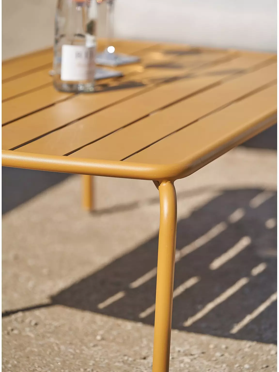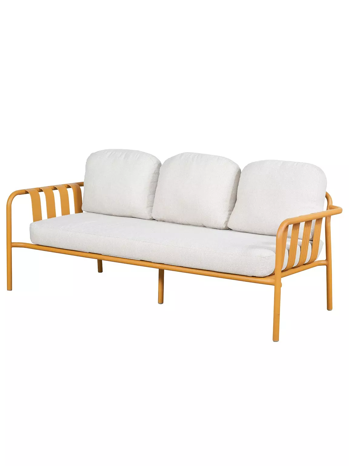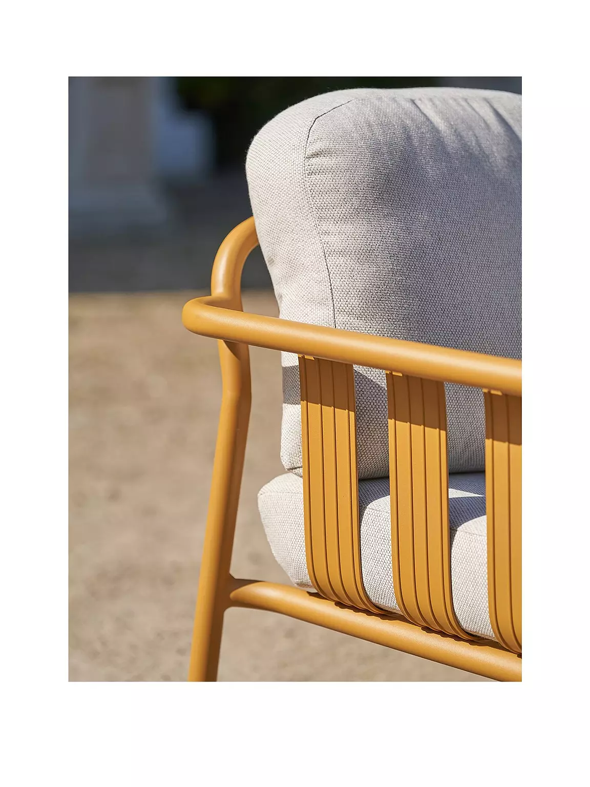 The Valletta outdoor seating set features a powder-coated aluminium frame in a Tumeric colour with complimenting season proof cushions in an Olefin fabric. Highly resistant to staining and fading, it is quick drying, therefore making it perfect for outdoor furniture.
