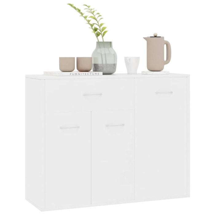 The VidaXL White Sideboard combines sleek style and practicality in a compact design. Measuring 88x30x70 cm, it offers versatile storage without taking up too much space. Crafted from durable chipboard, this sideboard is built for long-lasting use. Its clean white finish effortlessly complements any decor, making it a perfect fit for any room. With generous storage space behind its doors, it helps keep your space tidy and organized. This sideboard delivers both functionality and affordability, making it an ideal storage solution for any home.
