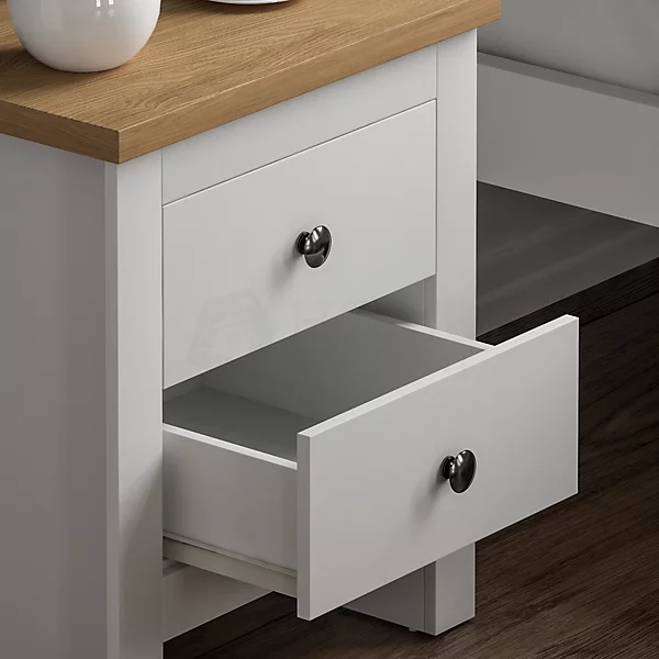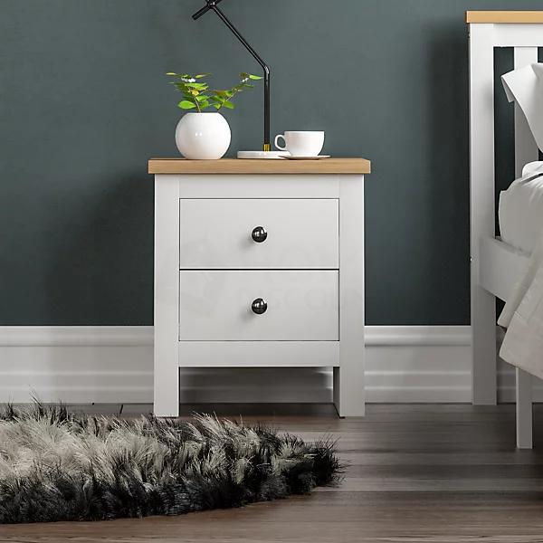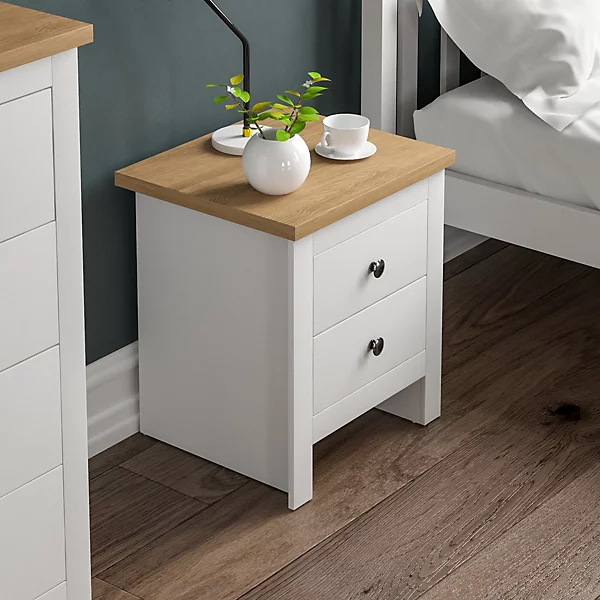 (White & Oak) Arlington 2 Drawer Bedside Chest Cabinet Oak Top